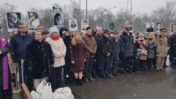 Foștii deținuți politici, omagiați la București, pe o vreme de iarnă