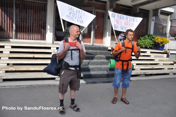 Florin Suciu si Sebastian Muscalu au pornit pe 19 septembrie din Bacau intr-un mars spre Cotroceni. Mesajul lor catre Presedintie este simplu si ferm: Rosia Montana nu este de vanzare! Daca de aur are Romania nevoie, atunci noi il vom dona pe al nostru, dar nu va atingeti de Rosia Montana!