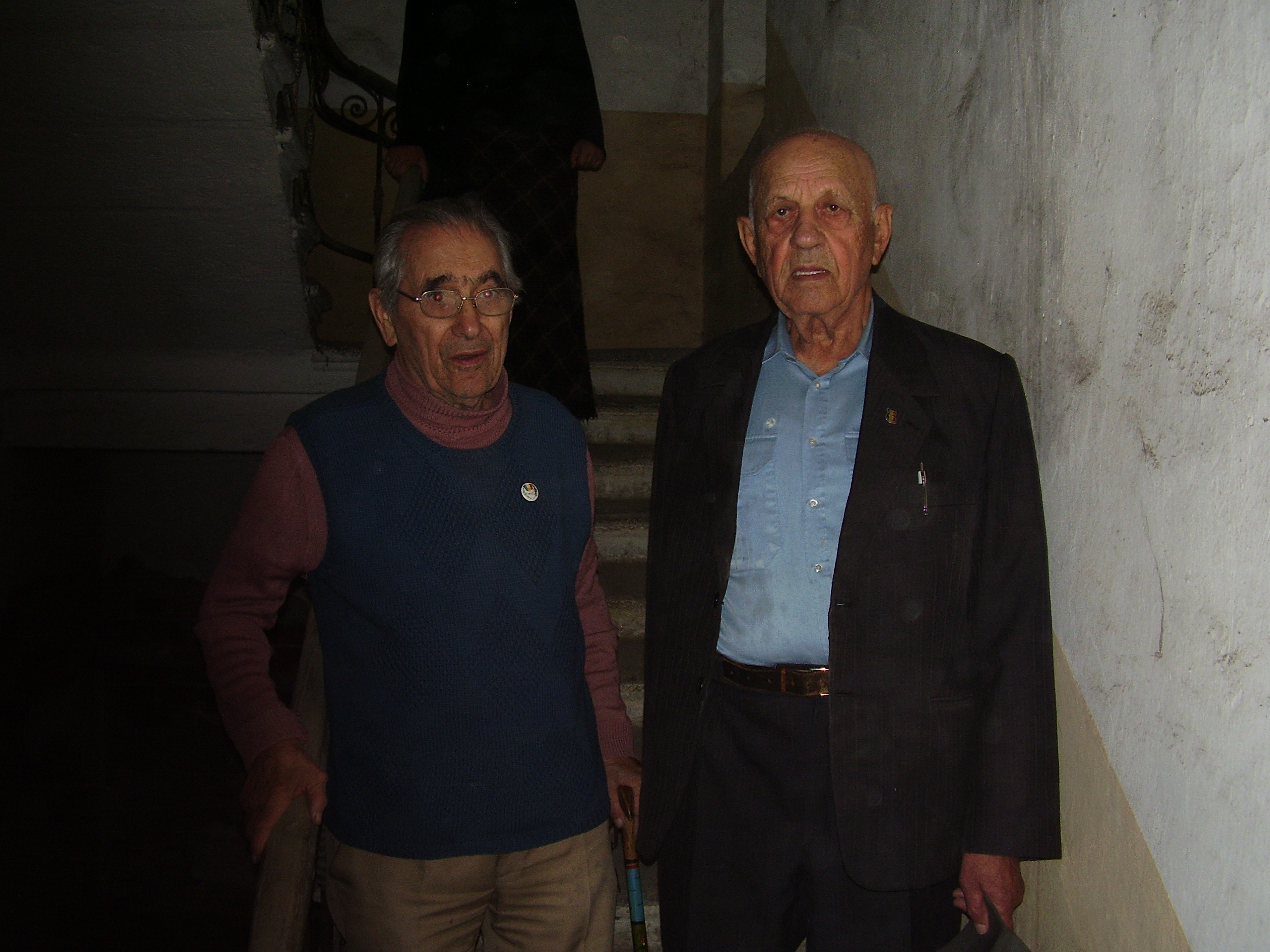 Foşti deţinuţi politici în vizită la fosta închisoare din Râmnicul Sărat: Gheorghe Mântulescu (91 de ani, deţinut politic continuu între 1941 şi 1964) şi Petre Velescu (86 de ani, 6 ani detenţie politică).