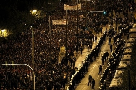 Circa 100.000 de persoane au manifestat în total, 80.000 la Atena şi 20.000 Salonic, împotriva unui nou program de austeritate impus de UE şi FMI Greciei, pe care deputaţii se pregătesc să îl voteze pentru evitarea “falimentului” ţării, a anunţat poliţia, relatează AFP.
