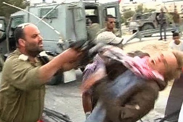 Daily Mail a dat publicităţii un clip violent, cu un ofiţer al armatei israeliene care loveşte cu patul puştii în faţă un manifestant pro-palestinian.