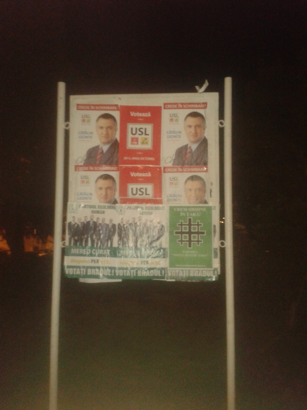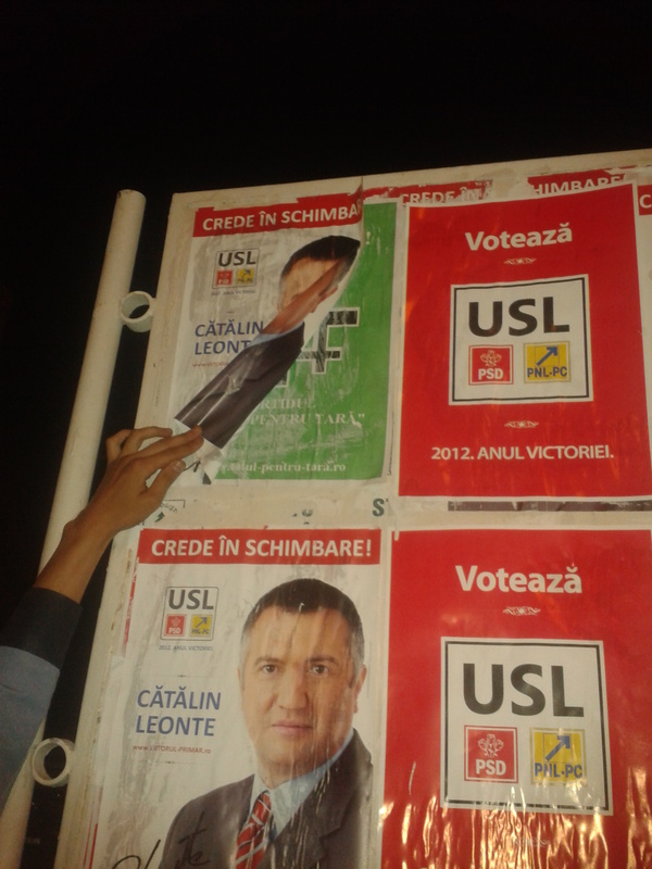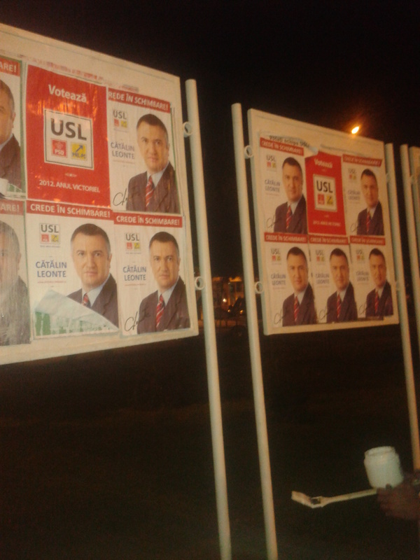 eu am patit acelasi lucru cu afisele din partea MC-L care si-a lipit afisele sub ale mele…asa ca nu le-am mai facut plangere la politie/BEC…in schimb nu s-a luat nimeni de mine, ba mai mult un biciclist mi-a urat sa-i bag pe toti la parnaie deoarece sunt hoti…m-a amuzat mult treaba