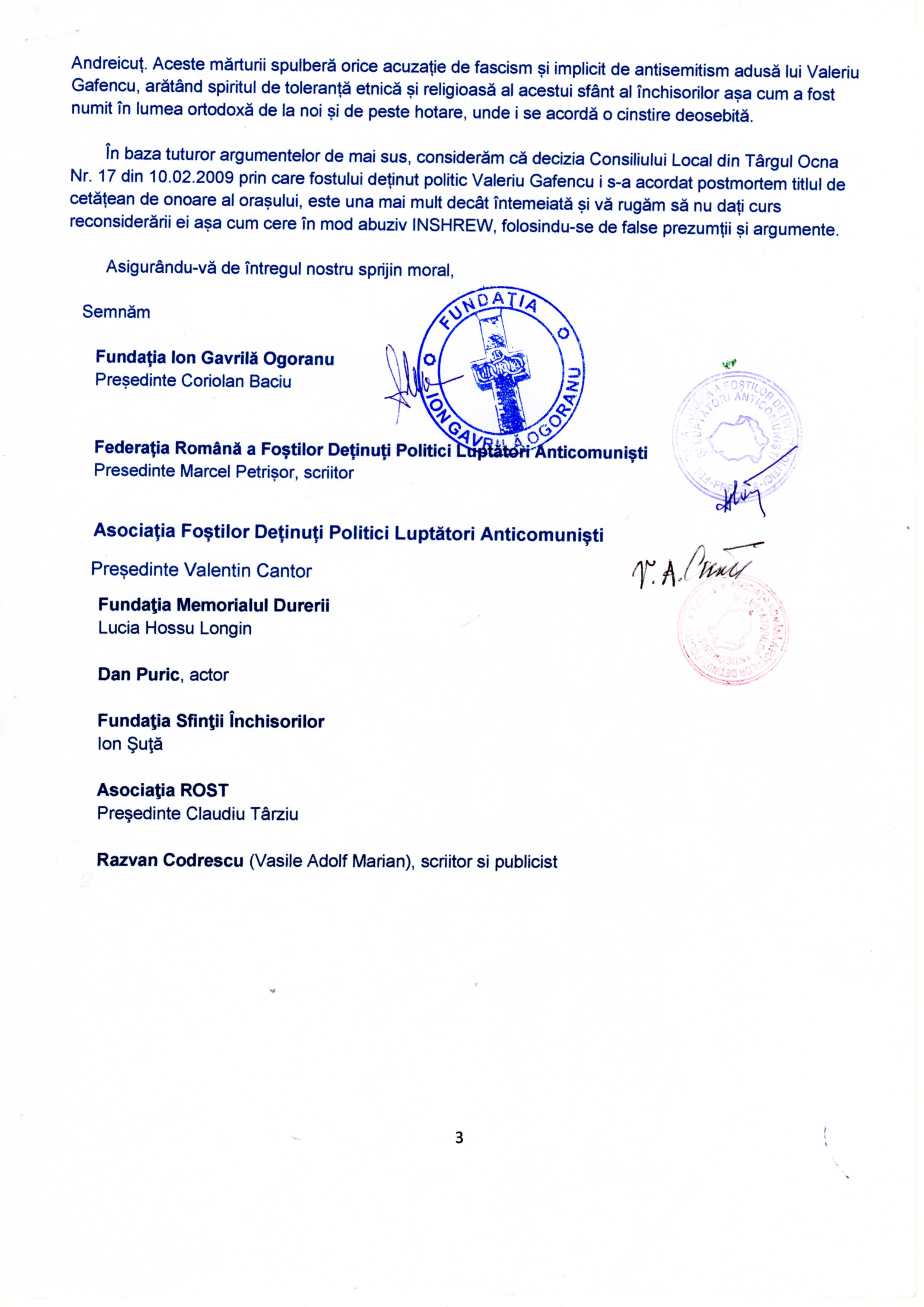 Return to "SOLIDARITATE PENTRU VALERIU GAFENCU! Societatea civilă şi oamenii de cultură se mobilizează pentru…" tg ocna memoriu pag 3 Next Previous