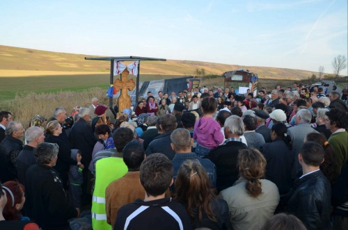 Peste 400 de persoane au participat duminică la slujba de sfinţire a unei troiţe ortodoxe la Pungeşti, comuna care a devenit epicentrul luptei contra înstrăinării resurselor naturale. Troiţa a fost dăruită de un grup de călugări naţionalişti din Moldova. În comuna vasluiană ar urma să fie amplasată de către compania americană Chevron prima sondă de explorare a gazelor de șist.Troiţa a fost adusă de călugării de la mănăstirea Petru Vodă, ctitorită de duhovnicul Justin Pârvu, în semn de preţuire pentru oamenii care au stat în faţa utilajelor de la Chevron şi nu le-au permis sã monteze o sondă. Monumentul a fost sfinţit de un sobor de preoţi, unii dintre ei aflându-se în prima linie a rezistenţei contra exploatării gazelor de şist de către compania americană.