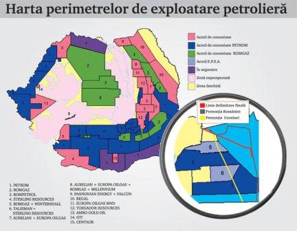 Până în prezent, în România au fost concesionate, în mod ilegal, pe baza Legii Petrolului nr. 238/2004, zece perimetre în vederea explorării sau exploarii și exploatării hidrocarburilor. Pentru restul perimetrelor de pe hartă, nu au fost incă semnate acorduri de explorare si exploatare, existând doar conce