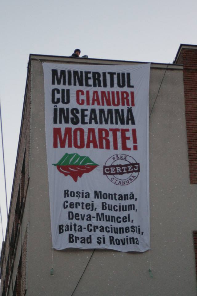 Rugăm cetăţenii României să se informeze corect asupra numeroaselor neajunsuri ale proiectelor miniere şi să aibă mereu în minte îngrozitoarele accidente ecologice de la Certej, din 1971 şi de la Baia Mare1, din 2000. Nu mai dorim ca astfel de tragedii să se repete! Ne arătăm solidaritatea cu mișcări din întreaga lume ce luptă împotriva proiectelor miniere distructive: Kremnica (Slovacia), Halkidiki (Grecia), Corcoesto (Spania), Salave Asturias (Spania), Bergama (Turcia), Kumtor (Kyrgyzstan), Talvivaara (Finland).”