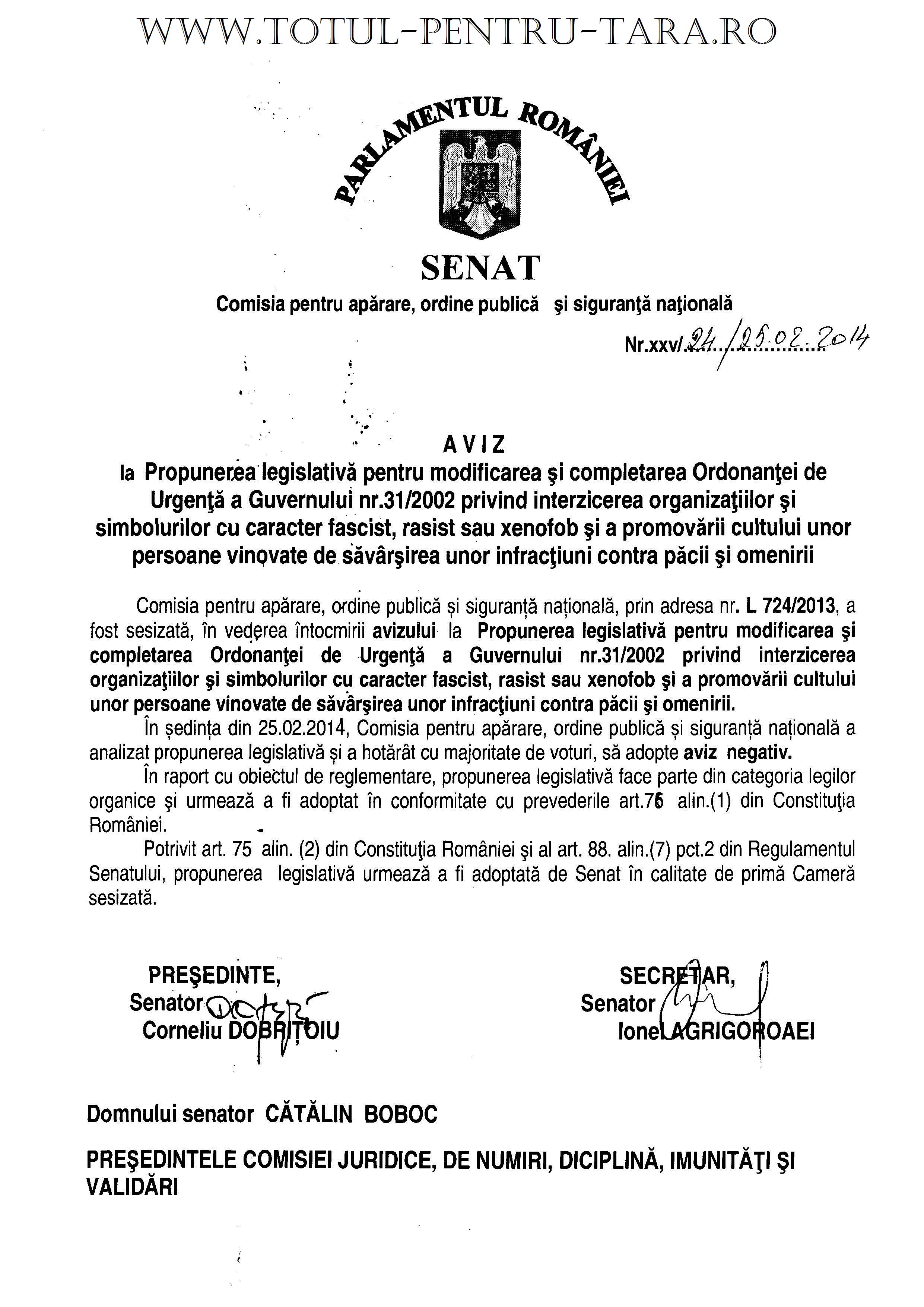 Return to "VICTORIE LA SENAT! Legea antilegionară a primit aviz negativ la Comisia de apărare şi siguranţă…" aviz comisia aparare Legis_PDF_2013_13L724ca6 tpt Next