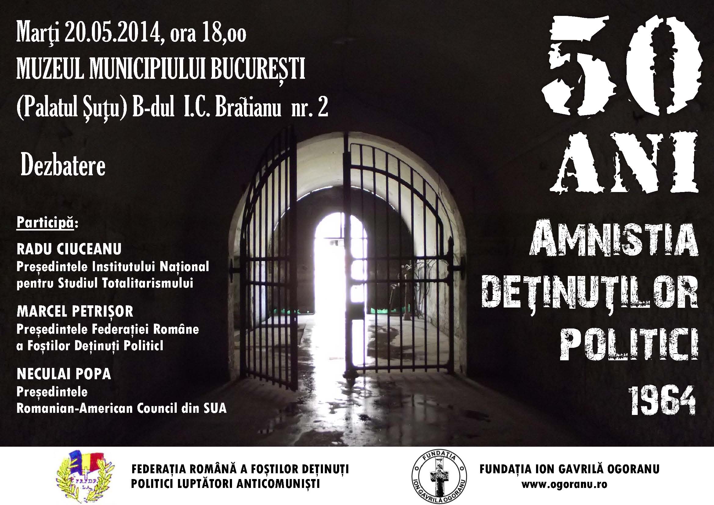 EVENIMENT. „50 de ani de la AMNISTIA DEŢINUŢILOR POLITICI (1964)”. Dezbatere.