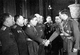 “ În ciuda faptului că nici o confirmare nu venise de la Cairo, la 23 august 1944 regele şi Şefii Blocului Naţional – Democrat au considerat că orice întârziere a acţiunii lor ar însemna noi lupte sângeroase şi inutile. Ei s-au decis deci să treacă la fapte. Regele a arestat pe mareşalul Antonescu şi a format un Guvern din care făceau parte aceşti şefi ai Blocului Naţional -Democrat. Armata Română a primit imediat ordinul de a înceta orice ostilităţi contra armatei sovietice.” Manifestul din 12 septembrie 1944 al numitului Niculescu-Buzeşti ajuns Ministru al Afacerilor Străine, ne arată nepăsarea cu care aceeaşi clică privea calvarul Oştirii Române dezarmate şi al poporului Român rămas fără apărare faţă de sălbatica năvală a hoardelor comuniste :