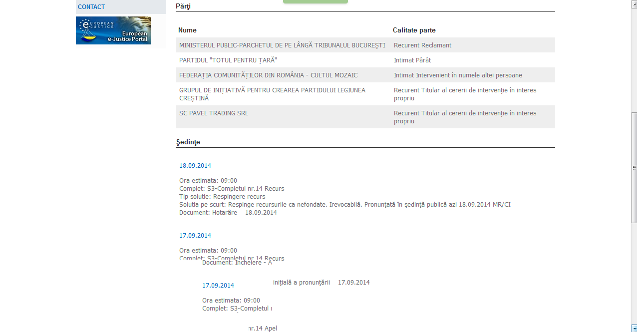 Încă o instanţă românească decide că Partidul „Totul pentru Ţară” este legal. Sentinţa din 18.09.2014 a Curţii de Apel Bucureşti a respins ca nefondat recursul făcut de Procuratură, care atacase astfel decizia instanţei Tribunalului Bucureşti din 22.06.2013, prin care se constata legalitatea TPT, precum şi faptul că asumarea trecutului legionar nu poate fi considerată fascism.