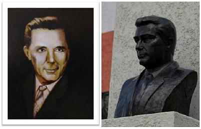Bust al scriitorului Vasile Posteucă în satul său natal din nordul Bucovinei.