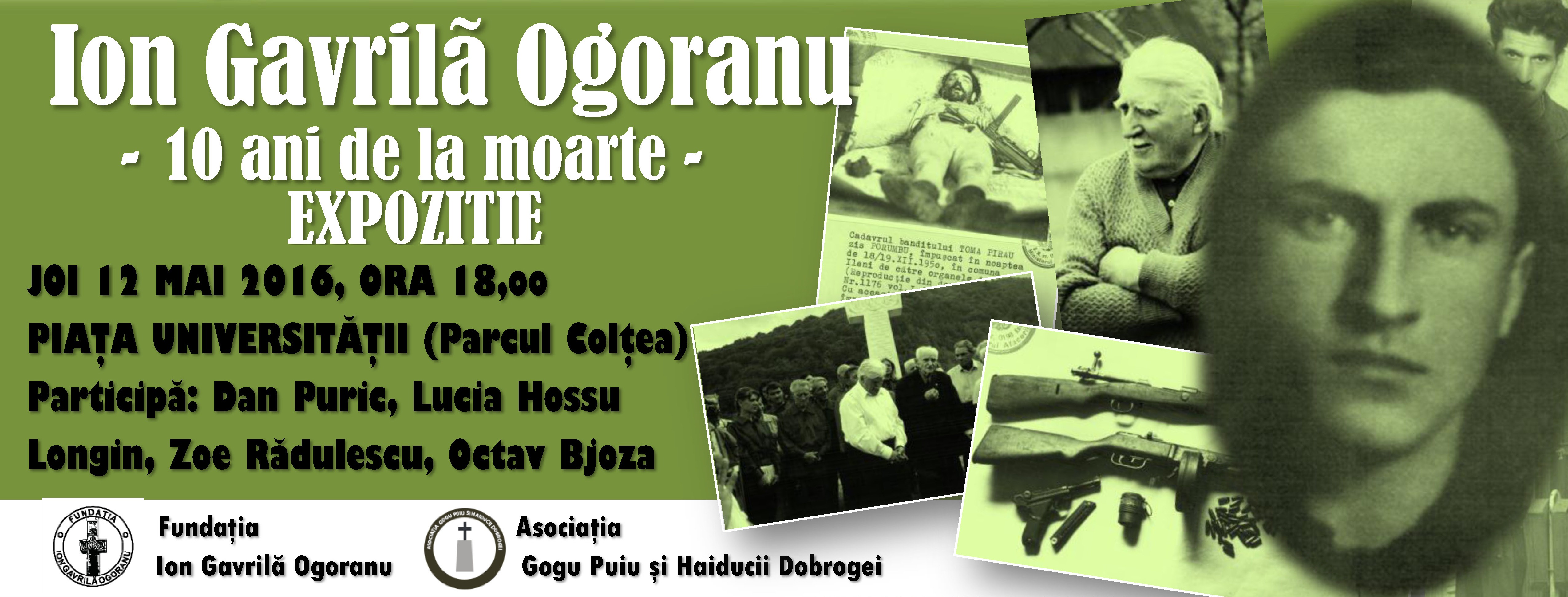Cei cărora le este dor de Ion Gavrilă Ogoranu, sunt invitaţi JOI 12 MAI 2016, ORA 18, la vernisajul EXPOZIŢIEI MEMORIALE „ION GAVRILĂ OGORANU – PREZENT!”, în Piaţa Universităţii (Parcul Colţea).
