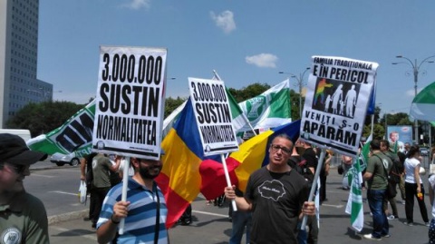 Manifestanţii au venit însoţiţi de pancarte pe care scria „3 milioane susţin normalitatea”, făcând referire la semnatarii petiţiei de pe Internet, pentru modificarea art. 48 alineatul 1 din Constituţia României care defineşte căsătoria, dorindu-se definirea căsătoriei că „uniunea dintre un bărbat şi o femeie”. De asemenea, aceştia au avut şi pancarte cu mesaje precum: „Familia tradiţională e în pericol. Veniţi să o apărăm!”, sau „Spune nu căsătoriilor şi adopţiilor homosexuale!”.