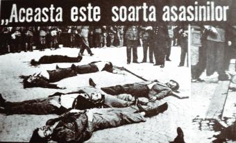 Expunerea publică a cadavrelor legionarilor executaţi sumar. Extras din presa regimului Carol II.