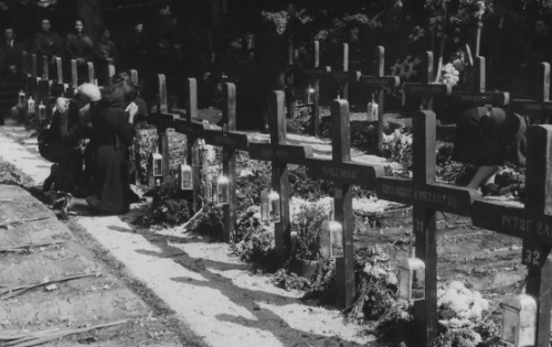 Urmaşii celor executaţi îşi plâng morţii. Cimitirul legionar din Predeal, oct 1940.