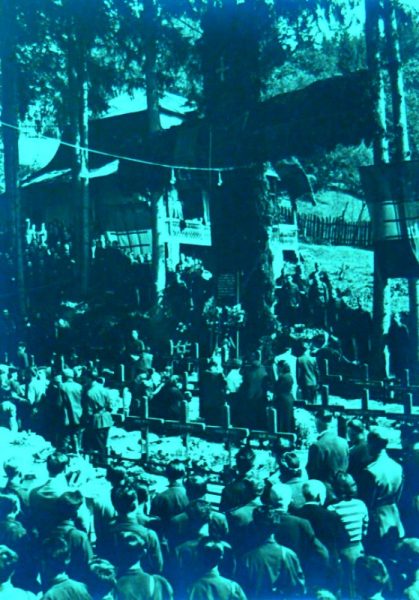 Predeal, oct. 1940. Ceremonie religioasă de înhumare a legionarilor executaţi în 21/22 sept. 1939. Imaginea are caracter strict documentar şi istoric.