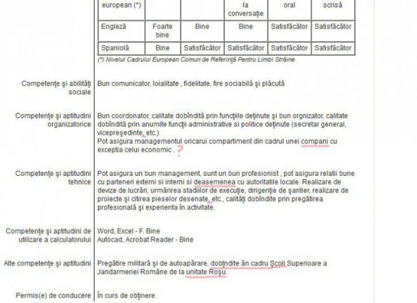 CV-ul lui Petcu abunda in greseli. La „Competente si aptitudini organizatorice”, precizeaza ca poate asigura „asigura managementul oricarui compartiment din cadrul unei compani (sic!) cu exceptia celui economic” 🙂 Mai spune ca are „Pregătire