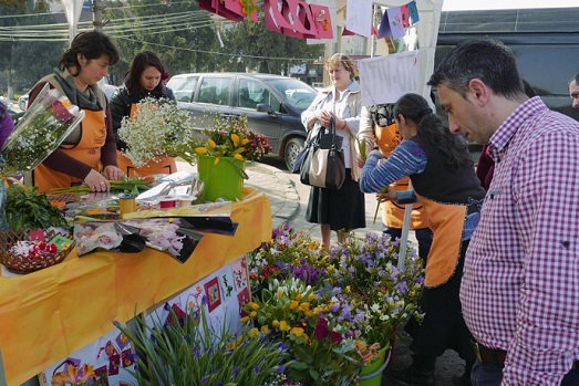 Au fost puse în vânzare flori din grădina Pro Vita Valea Plopului şi mărţişoare confecţionate de copiii din căminele aflate sub oblăduirea părintelui Nicolae Tănase.