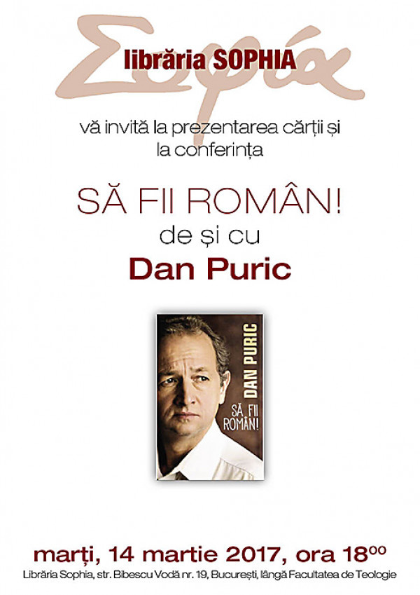 ÎNTÂLNIRE CU DAN PURIC! Librăria Sophia găzduieşte prezentarea cărţii „Să fii român!”