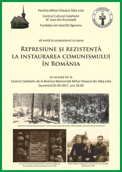 Parohia Mihai Viteazul Alba Iulia,  Centrul Cultural Catehetic Sf. Ioan din KronstadtFundaţia Ion Gavrilă Ogoranu vă invită la simpozionul cu tema „Represiune şi rezistenţă la instaurarea comunismului în România”