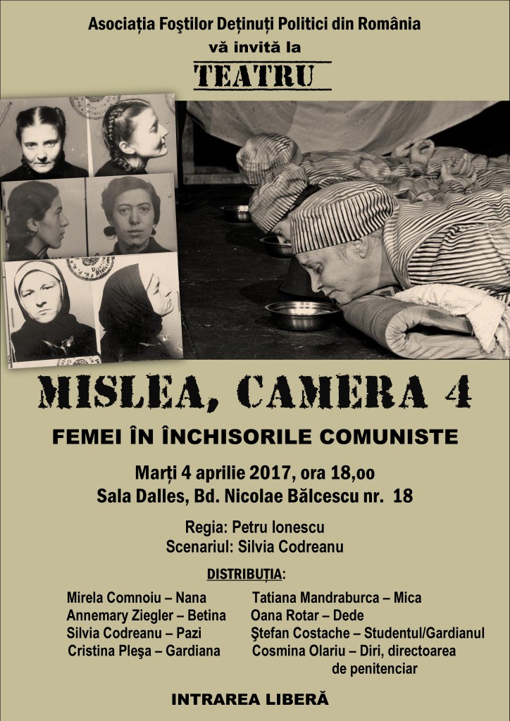 Return to "Vino la teatru! MISLEA, CAMERA 4 – spectacol memorial dedicat femeilor din închisorile politice…" afis mislea – Copy (2) Next