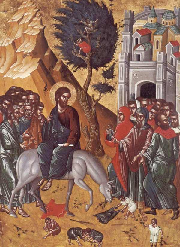 Atipic acest episod al intrării Domnului în Ierusalim, relatat de toţi cei patru evanghelişti (Matei 21, 1-16; Marcu 11, 1-11; Luca 19, 29-48; Ioan 12, 12-18). Smerenia, discreţia, blândeţea Mântuitorului par a fi puse în umbră de această primire triumfală, de osanalele mulţimilor entuziaste. „Şi intrând El în Ierusalim, toată cetatea s-a cutremurat, zicând: Cine este Acesta?” (Matei 21, 10). Învierea lui Lazăr, după patru zile în care trupul său a stat în mormânt, a fost ca o încununare a multelor minuni făcute până atunci şi care Îi dezvăluiau puterea dumnezeiască. „De aceea L-a şi întâmpinat mulţimea, pentru că auzise că El a făcut minunea aceasta” (Ioan 12, 18). Ca un Stăpân care se întoarce la casa Sa şi pune din nou lucrurile în rânduială „a intrat Iisus în templu şi a alungat pe toţi cei ce vindeau şi cumpărau în templu şi a răsturnat mesele schimbătorilor de bani şi scaunele celor care vindeau porumbei” (Matei 21, 12). Restabileşte demnitatea acestui loc drept „casă de rugăciune”, iar nu „peşteră de tâlhari” (Matei 21, 13). Şi ca o confirmare a autorităţii Sale, nu doar că Îi învaţă „ca unul care are putere” (Matei 7, 29), dar şi continuă să tămăduiască pe cei bolnavi. Căci „au venit la El în templu orbi şi şchiopi şi i-a făcut sănătoşi” (Matei 21, 14).