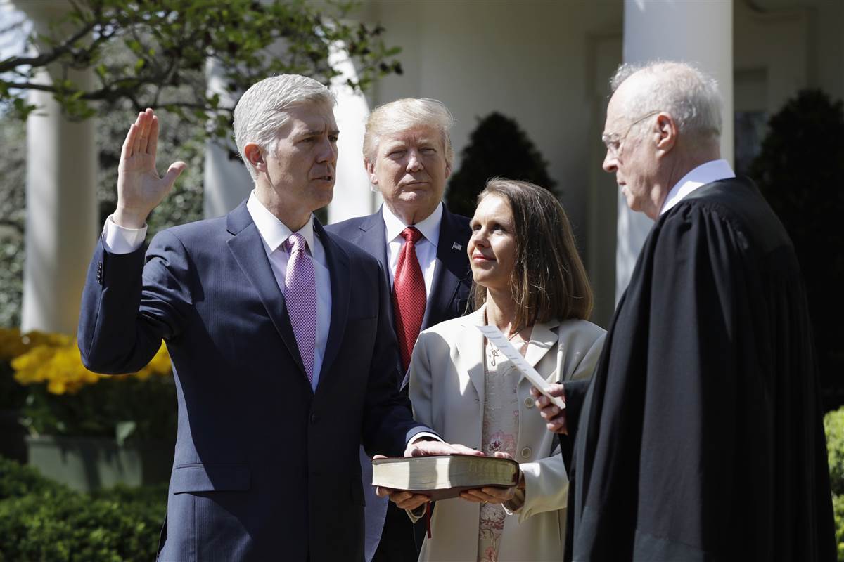 Neil Gorsuch a depus jurământul într-o ceremonie desfășurată în aer liber, în Grădina cu trandafiri de la Casa Albă, în prezența soției sale, a celorlalți membri ai Curții Supreme și a președintelui Donald Trump. Acesta a remarcat că decorul și ziua de primăvară au oferit ‘un fundal perfect’ pentru această ‘ocazie remarcabilă pentru democrația noastră’.