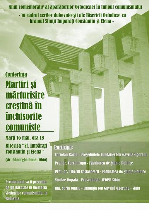 Evenimentul va avea loc la SIBIU, Biserica Sfinții Împărați Constantin și Elena din str. Gheorghe Dima, și va fi prefațat de un parastas în memoria victimelor comunismului în România.