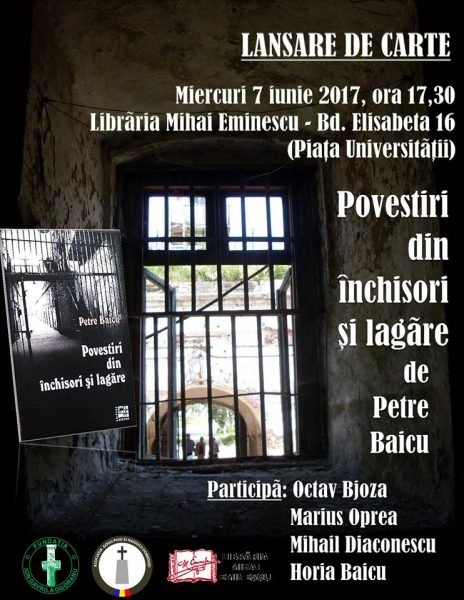 Lansarea cărţii POVESTIRI DIN LAGĂRE ŞI ÎNCHISORI de Petre Baicu, se va bucura de o participare prestigioasă: Octav Bjoza, Marius Oprea, Mihail Diaconescu şi Horia Baicu.
