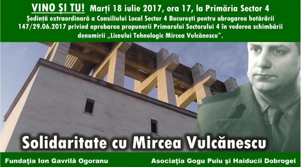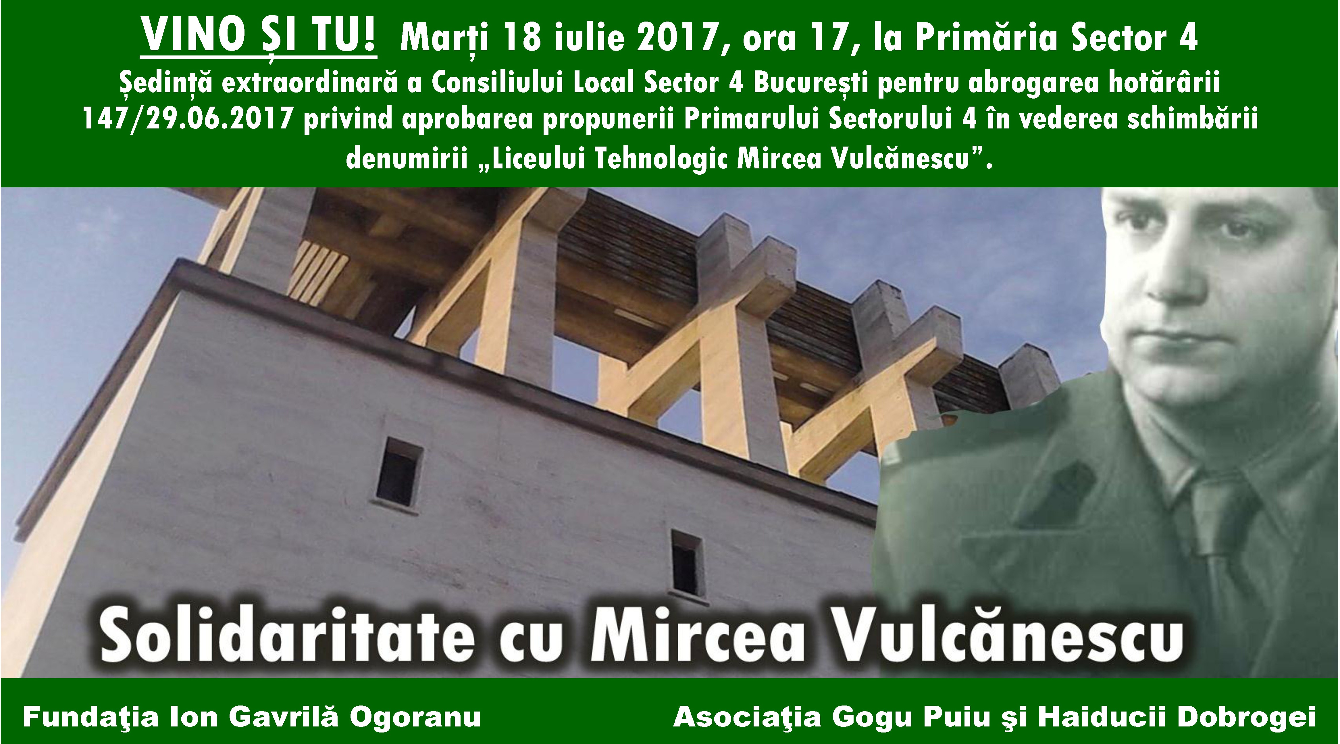 MOBILIZARE! AZI LA ORA 17 LA PRIMĂRIA SECTOR 4, are loc ședința extraordinară a Consiliului Local în care se discută anularea hotărârii de MODIFICARE A DENUMIRII LICEULUI M. VULCĂNESCU!