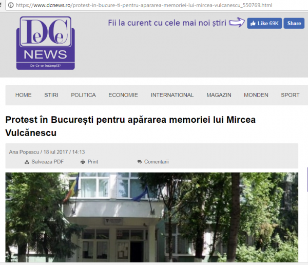 “În ședința Consiliului Local, care începe la ora 17, se dezbate modificarea hotărârii de schimbare a numelui liceului Mircea Vulcănescu. Ni se pare revoltător să schimbi numele liceului Vulcănescu, și din câte știm suntem la unison și cu elevii acestui liceu. Noi luptăm pentru păstrarea vie a memoriei elitei românești, și deci a României”, a declarat pentru DcNews, Florin Dobrescu, președintele Fundației Ion Gavrilă Ogoranu.