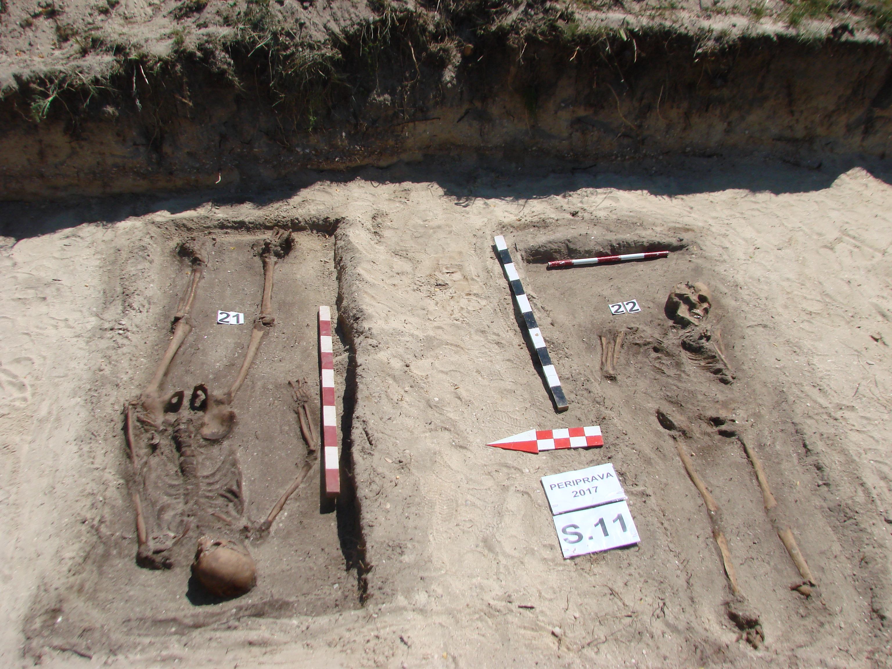 Pentru 11 dintre scheletele identificate şi dezvelite în cursul recentei campanii arheologice s-a urmat procedura legală, specifică în astfel de cazuri. Osemintele defuncților au fost demontate și recuperate în prezenţa unui medic legist, fiind împachetate și transportate la Serviciul de Medicină Legală din cadrul Spitalului Județean Tulcea. După examinarea medico-legală, ca și în anii precedenți, acestea vor fi transferate pentru analize specializate la Institutul Naţional de Medicină Legală Mina Minovici din Bucureşti, unde se realizează și testele pentru stabilirea ADN-ului persoanelor decedate. Procedurile legale s-au aplicat începând din 2015, fiind necesară redeschiderea secțiunilor practicate în 2013 pentru a se cerceta și recupera osemintele din mormintele depistate în prima campanie. Informaţiile obţinute vor completa o bază naţională de date, care va cuprinde treptat toate informaţiile de acest tip ce se vor obţine de la victimele care vor mai fi descoperite şi deshumate pe teritoriul naţional şi a căror identitate este incertă sau nu poate fi stabilită prin alte metode. Scopul acestui demers urmărește verificarea și compararea ADN-ului obținut de la rudele și urmașii în viață ai victimelor cu baza națională de date aflată în curs de constituire. Pe această cale facem din nou apel către rudele și urmaşii deţinuţilor politici morți la Periprava, ca să ne contacteze şi să ne fie alături în demersul nostru de identificare a osemintelor descoperite până în prezent, dar şi a celor care se vor recupera în campaniile arheologice viitoare.