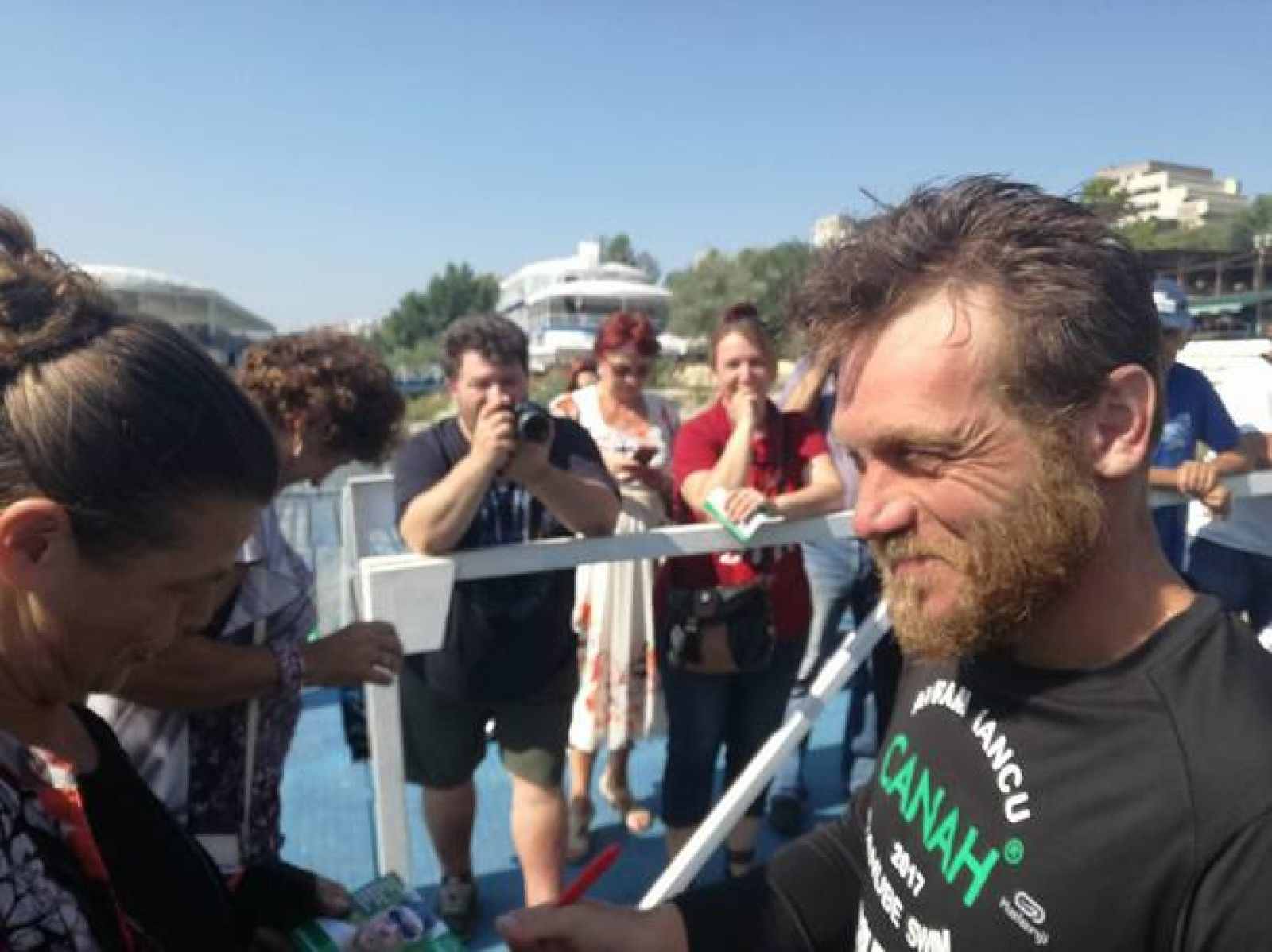 Avram Iancu, bibliotecarul din Petroşani care şi-a propus să traverseze Dunărea înot de la izvoare până la Marea Neagră, fără costum de neopren, a stabilit recordul mondial, după ce a ajuns, sâmbătă, la Sulina, punctul final al cursei, unde a fost aşteptat de sute de oameni.