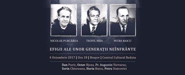 Nicolae Purcărea, Teofil Mija și Petre Baicu sunt trei exemple din această comunitate eroică și martirică a căror personalitate și operă o vom evoca împreună cu invitații nostri în cadrul simpozionului memorial de miercuri, 4 octombrie 2017, ora 18, la Centrul Cultural Reduta din Brașov.