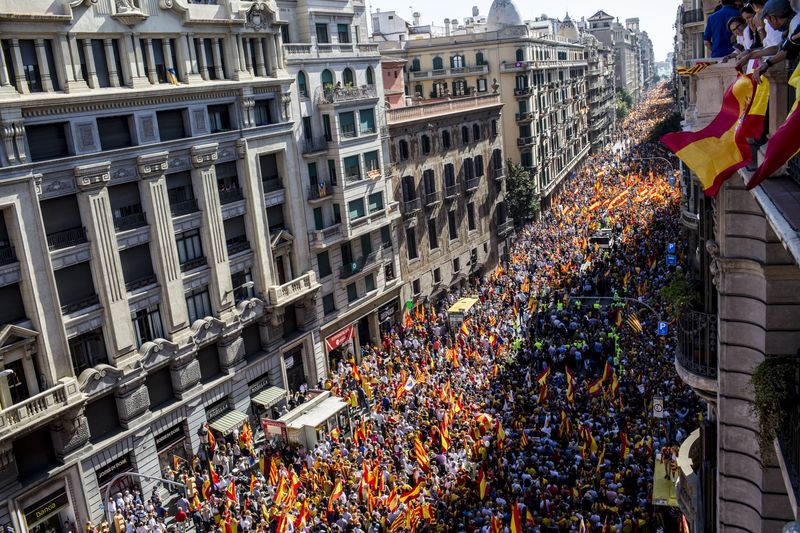 Masiv protest pentru unitatea Spaniei, organizat în Catalonia