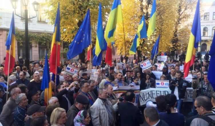 La 17 octombrie a.c, reprezentanții comunității românești din regiunea Cernăuți, au organizat în fața Administrației Regionale de Stat Cernăuți o acțiune de protest împotriva Legii Învățământului din Ucraina, care potrivit articolului 7, sporește rolul utilizării limbii ucrainene și practic restricționează utilizarea limbilor minorităților naționale în procesul de învățământ.