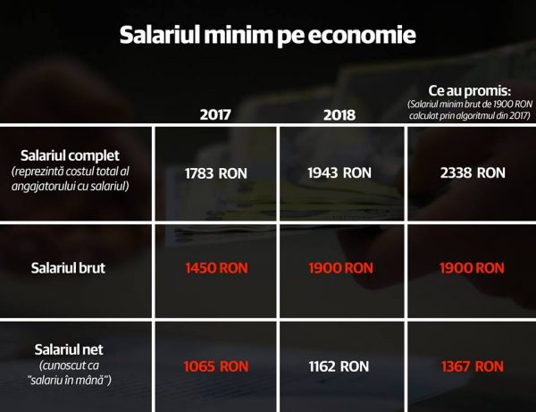 De la 1 ianuarie 2018 salariul minim brut a crescut de la 1450 la 1900 RON. Doar că această creștere din pix este un artificiu al Guvernului pesedist și nu se observă în buzunarului românului. Prin transferul constribuțiilor din sarcina angajatorului în cea a angajatului, ceea ce părea a fi inițial o creștere salarială substanțială s-a dovedit a fi încă o minciună și o dovadă că PSD-ul nu-și respectă propriul program de guvernare.