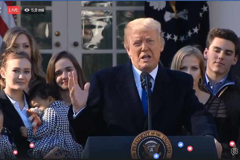 Vineri, 19 ianuarie 2018, Președintele SUA, Donald Trump, a adresat un mesaj în direct de la Casa Albă sutelor de mii de participanți la Marșul pentru Viață 2018 de la Washington, DC, eveniment care anul acesta a avut ca temă „Dragostea Salvează Vieți”.