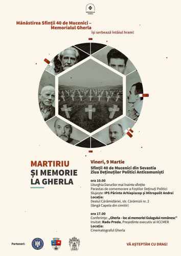 Al doilea eveniment se va desfășura, în după-masa zilei, de la ora 17:00, la Cinematograful Pacea din oraș, unde Radu Preda, președintele executiv al Institutului de Investigare a Crimelor Comunismului și Memoria Exilului Românesc, va susține conferința cu tema Gherla – loc al memoriei gulagului românesc.