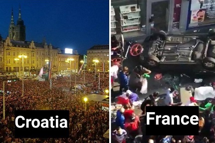 În schimb, în mai multe orașe din Franța (video+foto jos), sărbătoarea s-a transformat în confruntări cu poliția la care s-au folosit bombe artizanale, în vandalisme și pietoni loviți de mașini. Doi fani au decedat.