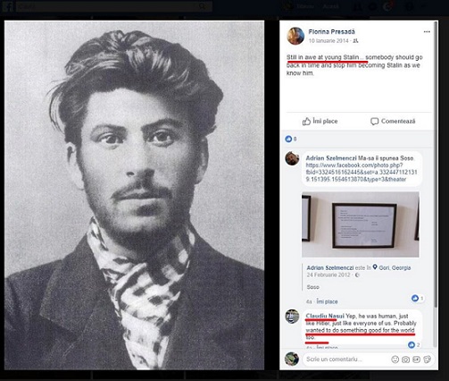 Postarea a venit în contextul în care un alt membru USR, senatoarea Florina Presadă, a postat o poză cu Iosif Stalin în tinerețe, însoțită de următorul comentariu: „Sunt încă în admirație față de cum arăta tânărul Stalin …cineva ar trebui să se întoarcă în timp să-l oprească din a deveni Stalin așa cum îl cunoaștem”