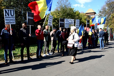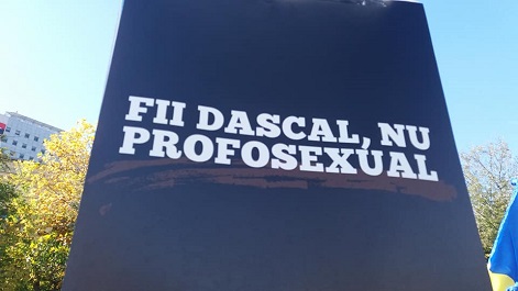 Mai mulți părinți se organizează, pe rețelele de socializare, pentru a protesta față de cooptarea profesorilor din școlile românești în planul de reeducare a elevilor în sensul acceptării homosexualității drept un comportament normal. Așa s-a întâmplat și joi, 25 octombrie, în Piața Victoriei din Capitală, de la ora 13.00 precum și anterior la Predeal la ora 11.00