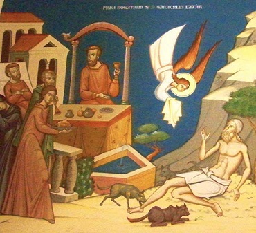 De la aşa o „înălţime”, nu avea cum să-l vadă pe Lazăr care în sărăcia lui avea doar nume însemnând în ebraică „Dumnezeu ajută” pentru că, aşa a fost şi fi-va, oamenii te pot părăsi, Dumnezeu niciodată. Hristos Omul, Răstignit pe cruce s-a rugat cu strigăt mare „De ce mai părăsit”, arătându-i că nu este părăsit, Părintele Îndurărilor i-a trimis îngeri mângâietori şi atunci şi-a putut da în pace Duhul Său: „Părinte, în mâinile Tale îmi dau sufletul Meu.” A făcut-o anticipând Învierea pentru că la Dumnezeu, „tot sufletul viază”. Or bogatul avea de toate, dar ce folos câtă vreme nu avea „nume” care să fie înscris în Cartea Vieţii pentru că nu făptuise nimic vrednic de să fie înscris spre dăinuire. Cum să-l vadă din aburii măririi lui pe acela care nu era doar sărac, ci şi plin de bube, care , urâte din cale afară alungau orice om. Doar câinii îi lingeau rănile, hrănindu-se din suferinţa lui, dar şi aliindu-i cumva durerile, atrăgând luarea aminte până unde poate ajunge cruzimea oamenilor ce întrece cu mult pe aceea a animalelor. Lui Lazăr îi rămânea doar să împartă cu jivinele firimiturile de la masa celui îmbuibat. La o vedere, bogăţia poate face destul de multe care să ia ochii, dar toate sunt efemere şi înţeleptul David îndemna: „Bogăţia de-ar curge pe pământ, nu vă lipiţi inima de ea”. Dacă atâtea şi atâtea diferenţe care ne despart în viaţă, sfârşitul este unul şi acelaşi pentru toţi – moarte. Într-un roman celebru, Hans Fallada convinge că „Fiecare moare singur” şi tot singur trebuie să răspundă pentru ceea ce a făcut că a făcut şi pentru ceea ce nu a făcut, că nu a făcut. David scrie că „Nimeni însă nu poate să scape de moarte, nici să plătească lui Dumnezeu preţ de răscumpărare. Că răscumpărarea sufletului e prea scumpă şi niciodată nu se va face,/ Ca să rămână cineva totdeauna viu şi să nu vadă niciodată moartea/ Fiecare vede că înţelepţii mor şi cei neînţelepţi şi nebunii şi lasă altora bogăţia lor/ Mormântul lor va fi casa lor în veac, deşi numita-au cu numele lor pământurile lor./Şi omul, în cinste fiind, n-a priceput; alăturându-se dobitoacelor celor fără de minte şi s-a asemănat!”