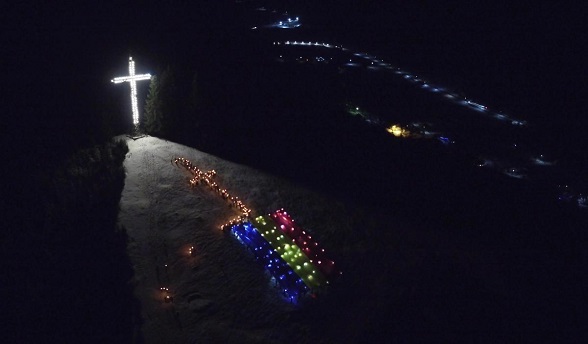 În urmă cu un an, tinerii din Asociația Studenților Creștini Ortodocși din România (ASCOR) marcau, chiar în prima zi a anului, începutul aniversării Centenarului Marii Uniri, scriind „100” cu torțe, pe Dealul Crucii de la Mănăstirea Putna.