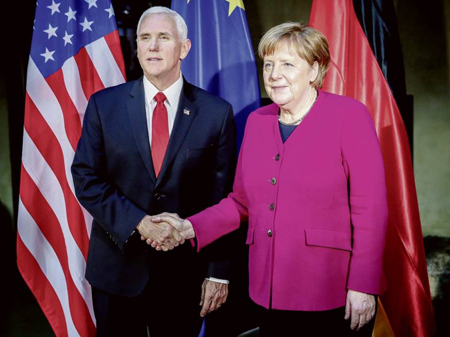 „Datorită președintelui Donald Trump, SUA sunt liderul lumii libere”, a declarat Mike Pence la München, menționând ceea ce a calificat succesul politicii externe americane în Afganistan și în Coreea de Nord. Pence a presat partenerii europeni să urmeze Washingtonul, să se retragă din acordul nuclear iranian și să-l recunoască pe Juan Guaido președinte al Venezuelei. Și a repetat că Washingtonul se opune gazoductului Nord Stream 2, în construcție între Rusia și Germania, sub Marea Baltică, cerând abandonarea acestuia. „Nu putem întări Occidentul devenind dependenți de Est.” SUA consideră Rusia responsabilă pentru anexarea Crimeii în 2014 și situația din estul Ucrainei, iar Pence a precizat că Occidentul face eforturi pentru a contracara atacurile cibernetice, dezin-