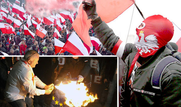 Demonstrația a avut loc în ziua în care Polonia marca a 15-a aniversare a aderării țării la blocul comunitar. În imaginile video apar bannere anti UE și steagurile Poloniei fluturate de manifrestanți în timpul unui marș spre birourile Comisiei Europene din centrul orașului. Un protestatar a declarat: „UE este din ce în ce mai centralizată politic. Deci, avem o politică externă comună, există o discuție despre o armată comună. În prezent apar tot mai multe legi, iar facturile nu sunt prezentate la Varșovia, ci la Bruxelles. Credem că valorile noastre tradiționale – familia, proprietatea, valorile catolice sunt amenințate de comisarii europeni liberali”….