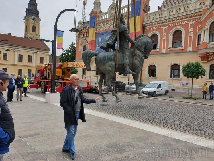 Imaginea cu statuia lui Mihai Viteazul „săltată” de macarale este o ruşine pentru Oradea!