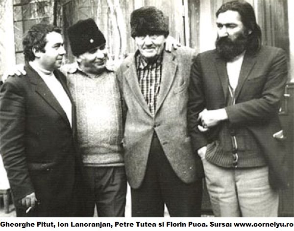 Imaginea de fată, am găsit-o cu multi ani în urmă si am publicat-o pe blogul foto personal, de la stânga la dreapta, Gheorghe Pitut, Ion Lancrănjan, Petre Tutea si Florin Pucă. Posibil, toti patru „suspecti de legionarism” – că prea stau îmbrătisati. Asteptăm cu interes viitoarele „cercetări” marca INSHR. Imagine cu autor necunoscut. Singura imagine cunoscută a exceptionalului grafician Florin Pucă. (va urma)