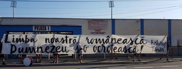 Mesajul „Limba noastră românească, Dumnezeu s-o ocrotească” interzis pe stadionul din Mediaș