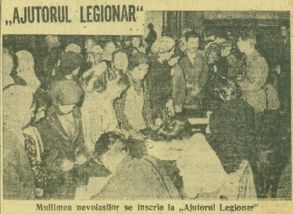 ”Ajutorul Legionar” a fost una din cele mai însemnate realizari ale Statului National-Legionar, un focar de caritate creștina și cea mai mare opera socială ce-a cunoscut-o vreodata România de la începuturile istoriei ei moderne. Meritul acestei instituții este cu atât mai mare cu cât a funcționat în afara de cadrul oficial al Statului si fară să coste nici o centima din bugetul țării. Toate ajutoarele veneau de la popor și se revarsau, fara intermediari fraudulosi, tot în popor. Pe lânga afluența de bani, la sediile „Ajutorului Legionar” soseau alimente si bauturi pentru cantine, puse gratuit sau cumparate cu preturi mult mai mici decât pe piata, apoi haine pentru a fi date la cei dezbracati, paturi si chiar mobile de tot felul.